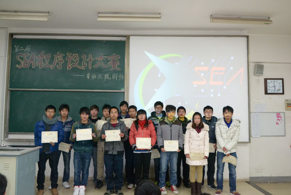 科协主办的第二届“SEA杯”程序设计大赛圆满落幕。自动化院科协前研发部副主任王福、前研发部成员王献东、现任副主席刘赟、赵孔明和研发部主任石剑桥等人担任本次活动评委。