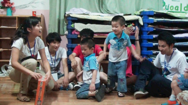 实践队员陪孤独症儿童玩游戏