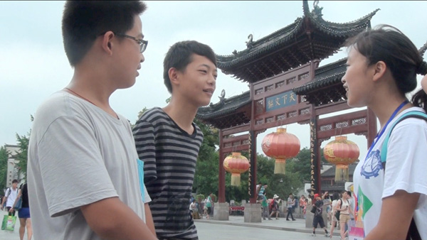 实践队员在夫子庙采访中学生