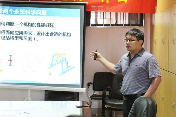 院长王保云教授主持。报告会结束时,与会教师、学生与刘辛军教授进行了热烈的交流互动。 报告人简介: 刘辛军,博士、清华大学教授/博士生导师,清华大学制造工程研究所常务副所长、精密超精密制造装备及控制重点实验室副主任、摩擦学国家重点实验室微纳制造分室主任。研究方向:机构学、机器人学、先进制造装备。2002.3-2003.11,韩国首尔国立大学访问研究学者,2004.3-2005.4,德国斯图加特大学“洪堡”学者。出版Springer英文专著1部;在国内外期刊和会议发表论文113篇,其中SCI论文56篇、他引697次;获美国和韩国发明专利各1项、中国发明专利28项;获得国家自然科学二等奖、教育部自然科学二等奖以及中国机械工业科学技术进步(发明类)一、二等奖各1 项;分别于2010年获得清华大学“学术新人奖”和2006年获得北京市“科技新星奖”;任中国机械工程学会机械传动分会机构学专业委员会第八届委员,高教出版社“机器人科学与技术”丛书编委会委员,三个国际期刊的编委会委员,江苏省科技咨询专家。