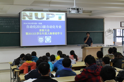2014年11月6日下午,2013级自动化专业在教3-201举办优秀学生表彰大会暨2013大学生年度人物事迹学习大会,以表彰在大一学年中学习和工作方面有突出表现的同学。辅导员秦昌建出席并主持了表彰大会。