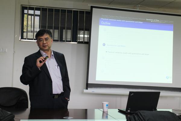 | 4月29日下午,香港城市大学数学系Daniel W. C. Ho教授应厂长资源 邀请来厂长资源 讲学,在仙林校区第五教学楼207会议室作题为“Distributed Networked System under Imperfect Communication Constraint”的学术报告。 Daniel W. C. Ho教授对现有分布式多智能体网络系统理论研究作了系统的报告,着重讲解了网络化控制的三个热点研究问题,即无线传感器网络的目标跟踪、基于量化通信和时延的分布式一致、基于事件触发机制的网络化控制。Daniel W. C. Ho教授指出了网络化控制的多个热点研究方向,并与大家分享了科研和论文写作的个人心得。 报告会结束时,与会教师、学生与Daniel W. C. Ho教授就相关热点问题进行了交流。 主讲嘉宾简介: Prof. Daniel W. C. Ho received BSc, MSc and PhD degrees in mathematics from the University of Salford (UK) in 1980, 1982 and 1986 respectively. From 1985 to 1988, he was a Research Fellow in Industrial Control Unit, University of Strathclyde (Glasgow, Scotland). In 1989, he joined the Department of Mathematics, City University of Hong Kong. Prof. Ho serves as Associate Editor for five international Control journals including Journal of Franklin Institute, IET Control Theory and its applications and Asian Journal of Control. He is recipient of “The Best paper award” from the 8th Asian Control Conference. In 2012, he is honored to be the Chang Jiang Chair Professor, Nanjing University of Science and Technology, awarded by Ministry of Education, China. Recently, he has been named in the list of Highly Cited Researchers 2014 published by Thomson Reuters. His general research interests are estimation and filtering theory, complex dynamical distributed networks, multi-agent networks, nonlinear singular systems and stochastic systems.