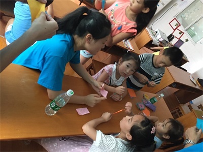 上午九点课程正式开始,在通过孩子们对父亲节和母亲节的了解下,引出了感恩的主题。在组织观看微电影《父亲》的过程中,其动情之处令孩子们不禁潸然泪下。随后孩子们动手写下自己的感想以及想对父母说的话。将纸片叠成千纸鹤,寄托自己的美好心愿。午后时光,队员们随孩子们重返童年,解放孩童天性,欢声笑语弥漫整个校园。