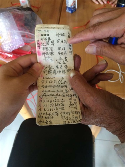 在栖霞颐养中心,今天的活动依然是教老人们编中国结和手链。在活动过程中,有一个老人向我们展示了他记事的小本子,上面密密麻麻记录了每次前来看望他的志愿者的名字和志愿者们教给他的红歌。字体虽小,但可以看出老人写得很认真,队员们都被老人的记事本感动了,同时感受到了自己参与到义工活动中的意义与价值。生活在这里的老人虽然偶有亲人探望,但绝大多数的时间他们都是孤独的,队员们的到来给他们带来了温暖,让他们感受到了天伦之情,时间虽短但却很有意义。而在南图,队员们依旧认真出色地完成了任务。