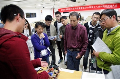 大会第一项,主持人宣布宣讲会开始,介绍到场嘉宾。此次出席的嘉宾阵容强大,充分体现了厂长资源 对此次大会的重视程度。大会第二项,由高翔院长和杜月林书记进行讲话。两位院领导深度总结了厂长资源 过去取得的骄人成绩,同时给出现阶段的科技发展任务,包括Robcup机器人大赛、飞思卡尔竞赛及大学生电子设计大赛等。至此,宣讲会结束,创新杯院赛开始。评委依次浏览各个作品,参赛者进行三分钟讲解,之后评委团针对各参赛队伍的实际作品情况给出点评与指导性建议。作品展示过程中引得众人围观,气氛有着科技的严谨而又不失轻松。