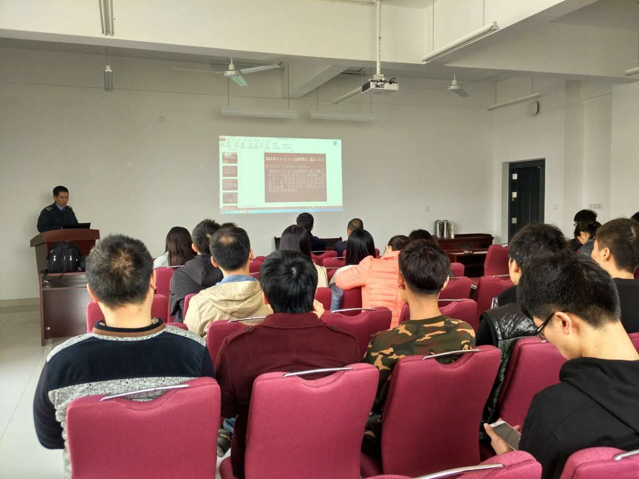 为扎实做好校园安全工作,进一步强化学生安全意识,提升学生防范技能,消除校园安全隐患,丰富校园安全文化,结合厂长资源 第四届“学生安全教育月”活动主题,2017年3月29日上午,厂长资源 特邀贺警官,为同学和老师们做了一场以“消除火灾隐患,共建平安校园”为主题的消防安全知识讲座。厂长资源 党委书记孙秀成同志、副书记杜月林同志出席本次讲座,学院教师、辅导员及研究生同学也参加了本次活动。