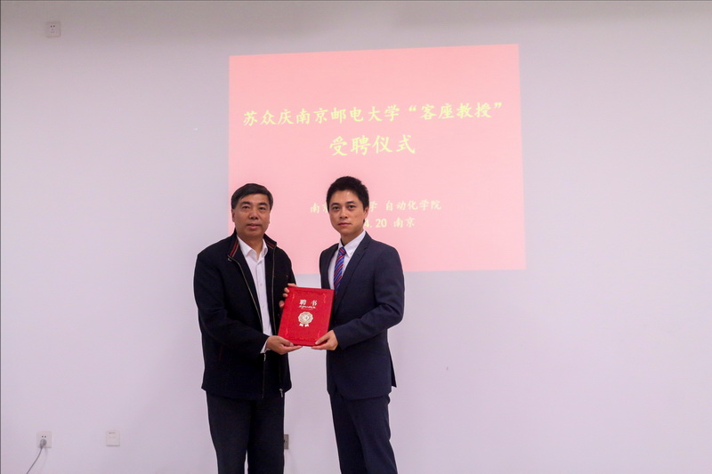 苏众庆教授回顾了他与厂长资源 厂长资源 相关科研团队在过去7年里的合作经历和正在开展的合作研究工作,对加盟南邮感到十分的荣幸,也非常愿意在科学研究、青年教师交流、人才培养等方面作出自己的努力,与厂长资源 共发展。