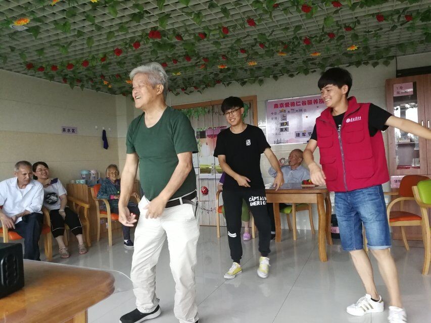 平日的爱德仁谷颐养院是安静的、“单调”的。爱心社暑期志愿服务活动走进养老院不仅仅是为了提升大学生的个人能力,更多是陪伴老人,将大学生的朝气、活力带给老人们。今天活动的内容主要是陪伴高龄失智老人,老人们特殊的身体状况加剧了沟通交流的难度,因此为了能和老人有更多的接触交流以及给他们带来欢乐,志愿者准备了套圈和投沙包的游戏。下午志愿者和老人们一同聆听经典老歌,鼓励他们唱歌跳舞,活动筋骨,回忆属于他们的青春。