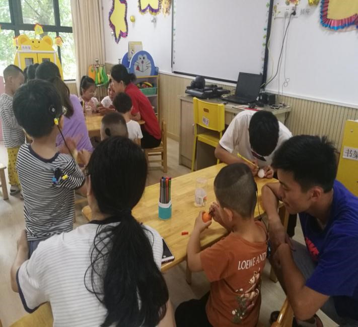 今天南京市的气温高达35℃,炎热难耐,但炎热的天气并不能阻挡可爱的志愿者们前往华澳听力语言康复中心的脚步。下午13:00志愿者们带着提前准备好的教学材料在南门集合前往华澳。