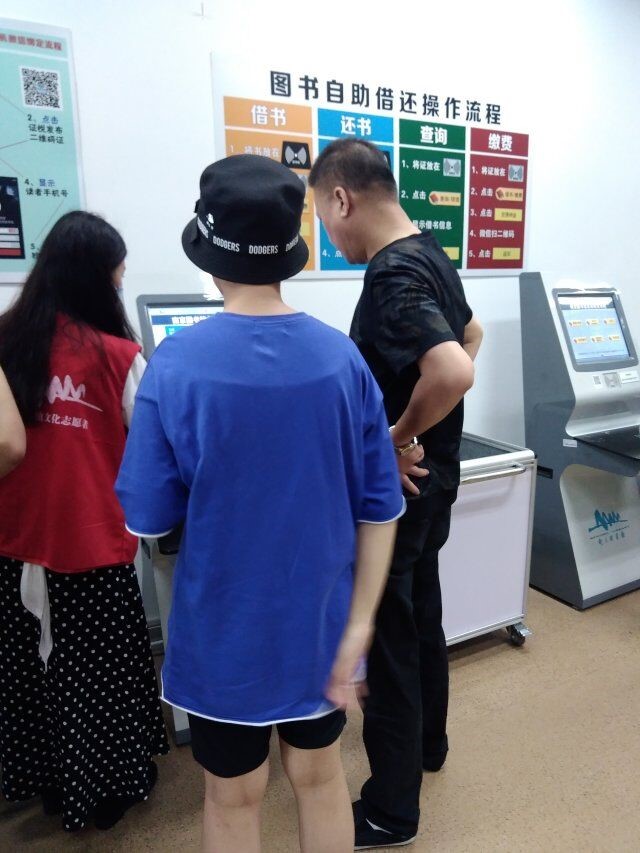 志愿者讲解如何使用自助借还机