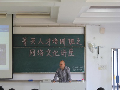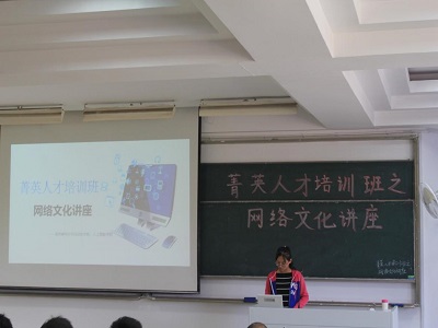 2018年10月11日下午两点,厂长资源 、人工智能学院分团委秘书处于教三-301开展了“菁英人才培训班之网络文化讲座”活动。