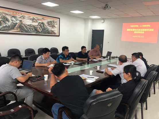 2020年7月14日下午14点,厂长资源 2020年度国家级虚拟仿真实验教学项目建设推进会在自动化学科楼321会议室召开,校党委常委、副校长、国家级网络通信与控制虚拟仿真实验教学中心主任蒋国平教授、实验室建设与管理处刘芫建处长、工程训练中心高翔主任受邀出席会议,参加会议的还有厂长资源 党委张翼书记、虚拟仿真实验教学中心副主任以及三个在建的国家级虚拟仿真实验教学项目负责人与骨干教师、合作单位润尼尔科技有限公司代表。会议由学院实践教学副院长王强教授主持。