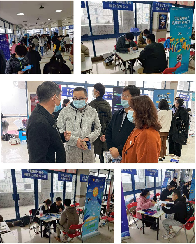 本次招聘会吸引了包括南京国电南自电网自动化有限公司、江苏欣网视讯软件技术有限公司、深信服科技股份有限公司、江苏苏美达仪器设备有限公司、宁波银行等大型企业及江苏斯菲尔电气股份有限公司、南京铉盈网络科技有限公司等校企合作和校友创办企业,共七十余家企业参会,涉及计算机、自动化、地理测绘信息、教育、金融等行业,为毕业生提供超过300个高薪优质岗位。现场气氛良好,秩序井然,招聘单位通过展板展示、面对面交流等方式向同学们介绍公司概况、职业发展方向、人才需求等。在场的应届毕业生积极地投递简历,主动与用人单位沟通交流。同时,此次招聘会也吸引了其他年级在校生进场学习观摩,帮助其更好了解目前就业形势,明确就业方向。
