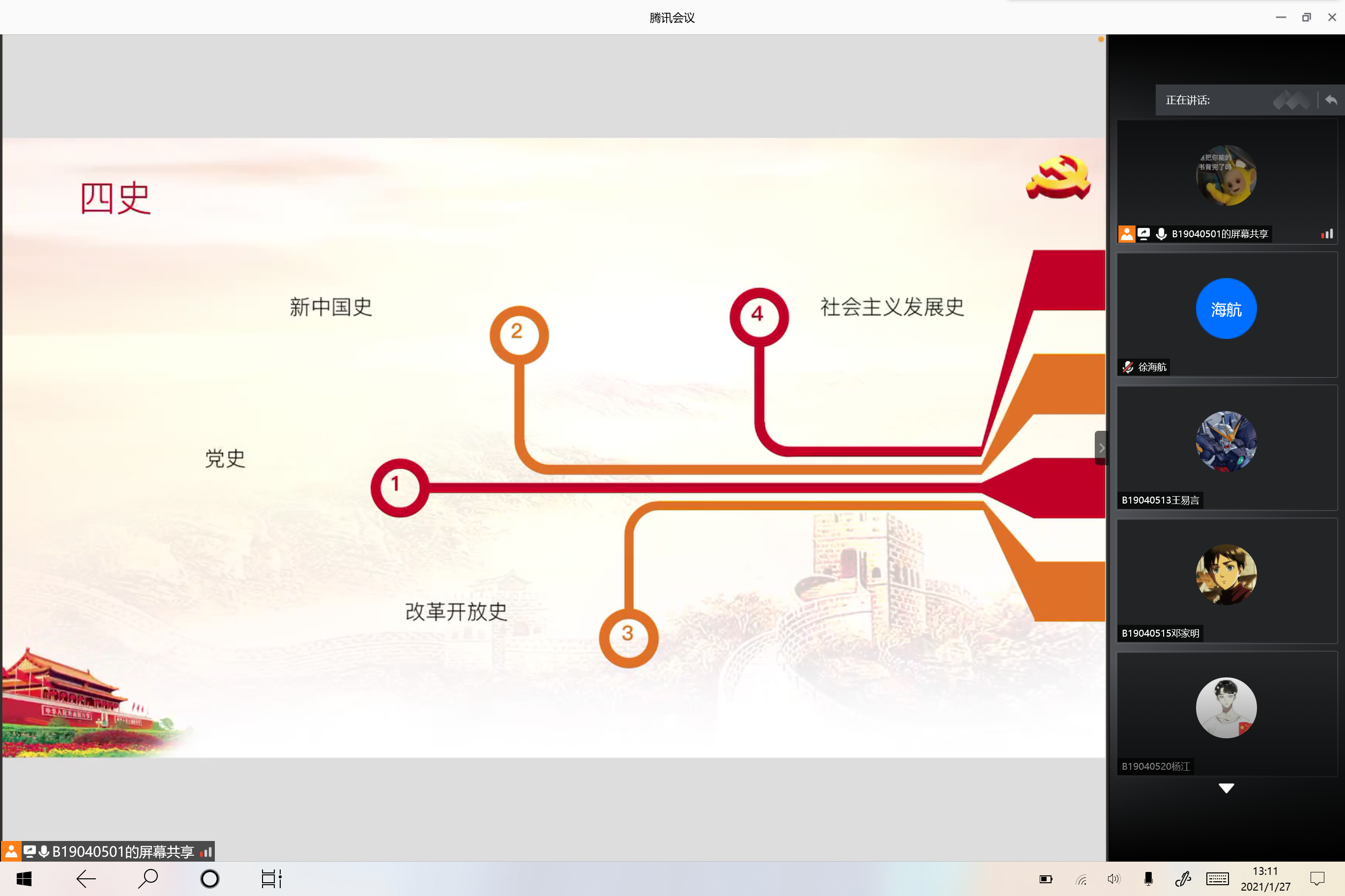 图为B190405团支部学习“四史”内容