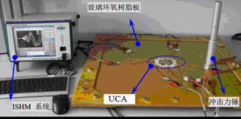 关键技术: 团队胡伟伟博士、鲍峤博士等自主开发了复合材料冲击监测及相位扰动校正系统。该系统在基于研究常规阵列整型ULA/UCA压电传感阵列结构特性的基础上,提出有针对性的压电传感阵列相位扰动校正及低速冲击源定位监测技术,旨在提高复合材料低速冲击源定位监测精度(监测角度误差2°以内,距离误差5cm以内)及算法运行效率(效率提升20%);充分利用已获取的多冲击源方位信息,结合空域滤波技术提出多冲击源冲击能量评估方法(评估精度在0.1J)。