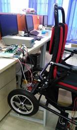 图1:轮椅驱动系统调试 图2:自行研制的轮椅驱动系统
