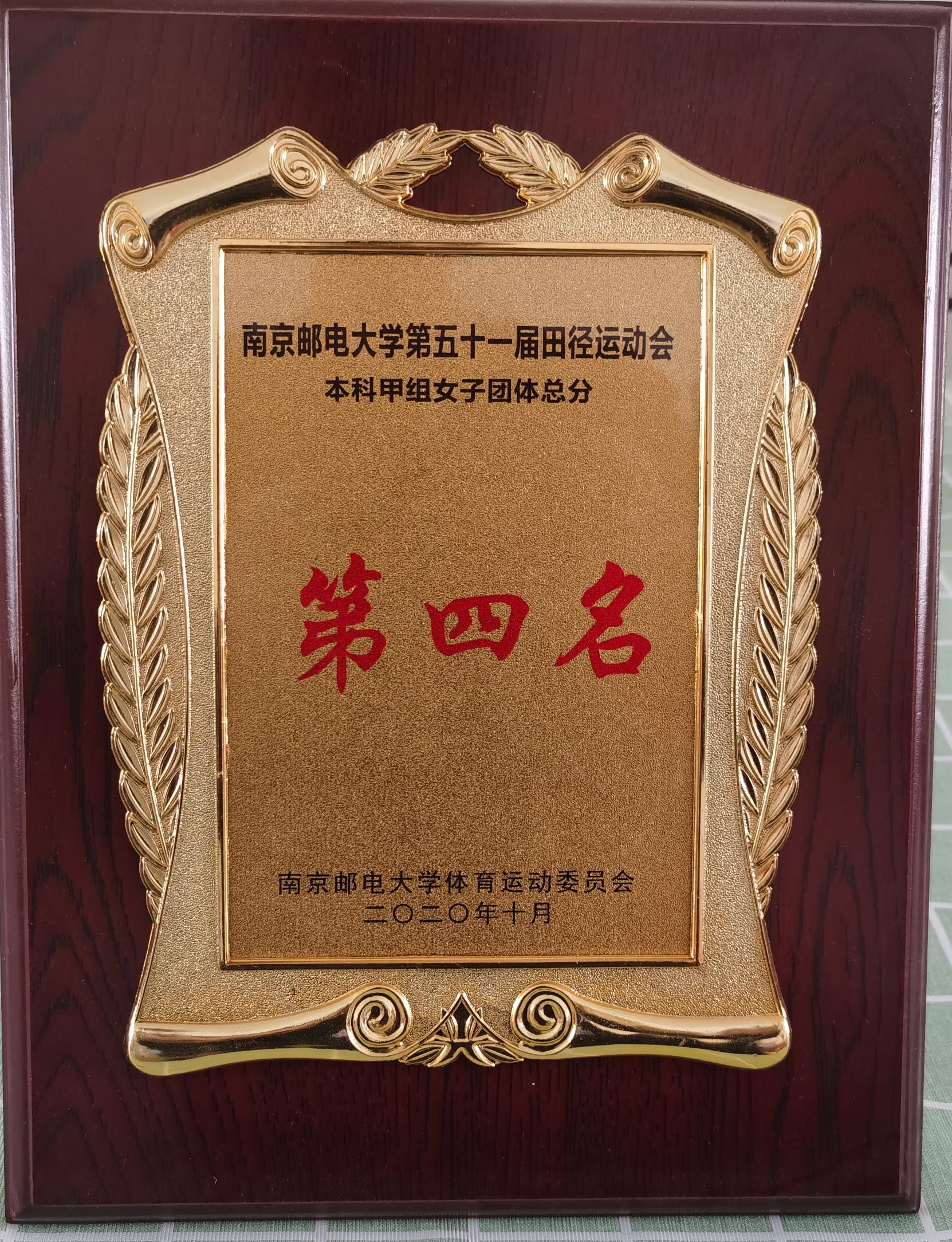 厂长资源 本科甲组女子团体在2020年厂长资源 第五十一届田径运动会中荣获第四名