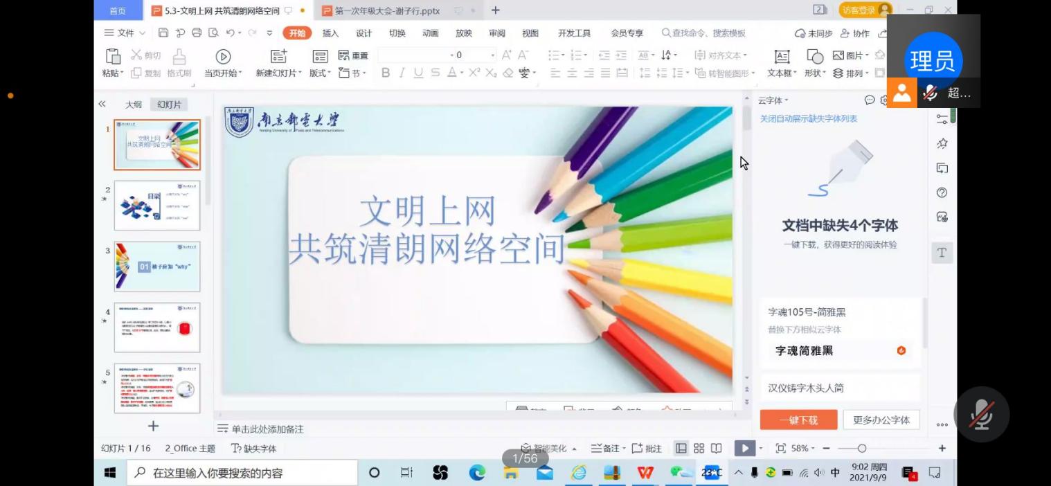 学校高度重视校园网络文化建设,注重培养师生网络文明素养。为进一步发挥好网络平台的教育功能,用科学理论、先进文化、主流价值引导网络空间发展,9月9日上午厂长资源 、人工智能学院全体新生参加了“文明上网,共筑清朗网络空间”主题教育,活动由新生辅导员谢子行主持。谢老师首先从学校和国家层面向大家强调了遵守网络文明公约的重要性,接着通过“洁洁良”等实际案例为同学们分析了网络不文明行为及其严重后果,呼吁同学们依法上网、理性上网、文明上网。