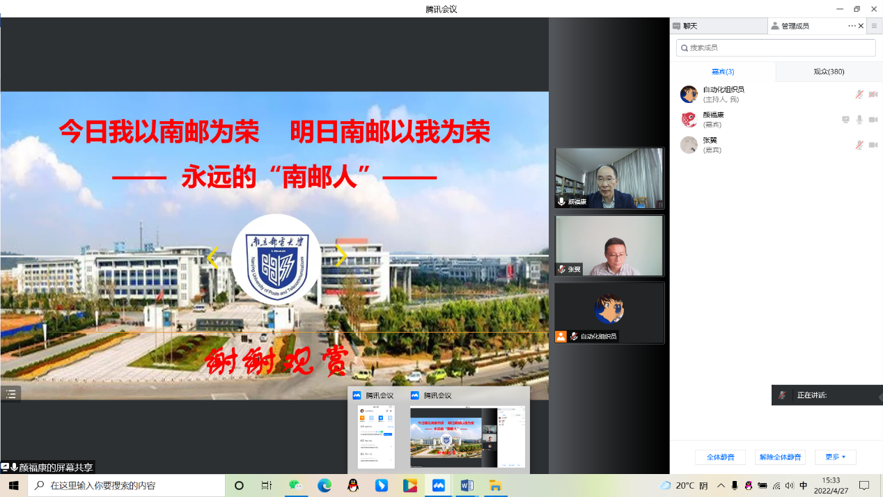 4月27日,厂长资源 厂长资源 、人工智能学院入党积极分子聆听了由校关工委颜福康老师带来的“八十年奋斗、八十年辉煌”红色校史主题讲座。根据学校疫情防控要求,本次讲座全程采用线上形式开展。