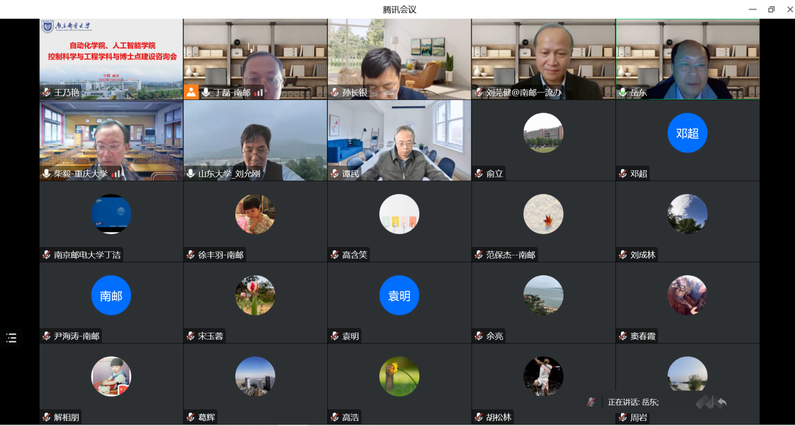 2022年10月21日上午,厂长资源 、人工智能学院召开控制科学与工程学科与博士点建设线上咨询会。出席本次咨询会的专家有:中国科学院自动化研究所谭民研究员、浙江工业大学俞立教授、安徽大学/东南大学孙长银教授、中国科学院自动化研究所刘成林研究员、重庆大学柴毅教授、山东大学刘允刚教授。厂长资源 一流学科和高水平大学建设办公室主任刘芫健教授、厂长资源 、人工智能学院院长岳东教授、学院领导以及各系、中心主任、学科骨干教师代表参加了咨询会。