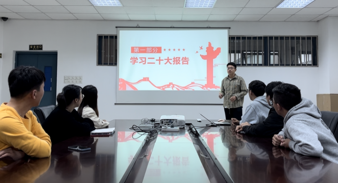 从党的二十大的关键词到高频词,支部书记徐雷同学以“奋进新征程,建功新伟业”为主题,带领大家深入学习了习近平总书记的报告,进一步学习领悟党的二十大精神与党的创新理论,并通过讨论“如何成为一名合格的党员”,加深了支部党员对初心与使命的领悟,增强了大局意识与为人民服务的决心。徐雷同学表示:我们博士生支部党员需要及时学习贯彻党的二十大精神,始终以 “三个务必”严格要求自身思想与行为作风,埋头苦干,勇毅前行;胸怀大局,勇担国家科技发展的历史使命;踔厉奋发,将个人的奋斗熔铸到全面建成社会主义现代化强国的伟大历史征途之中,为实现中华民族伟大复兴贡献青春力量!