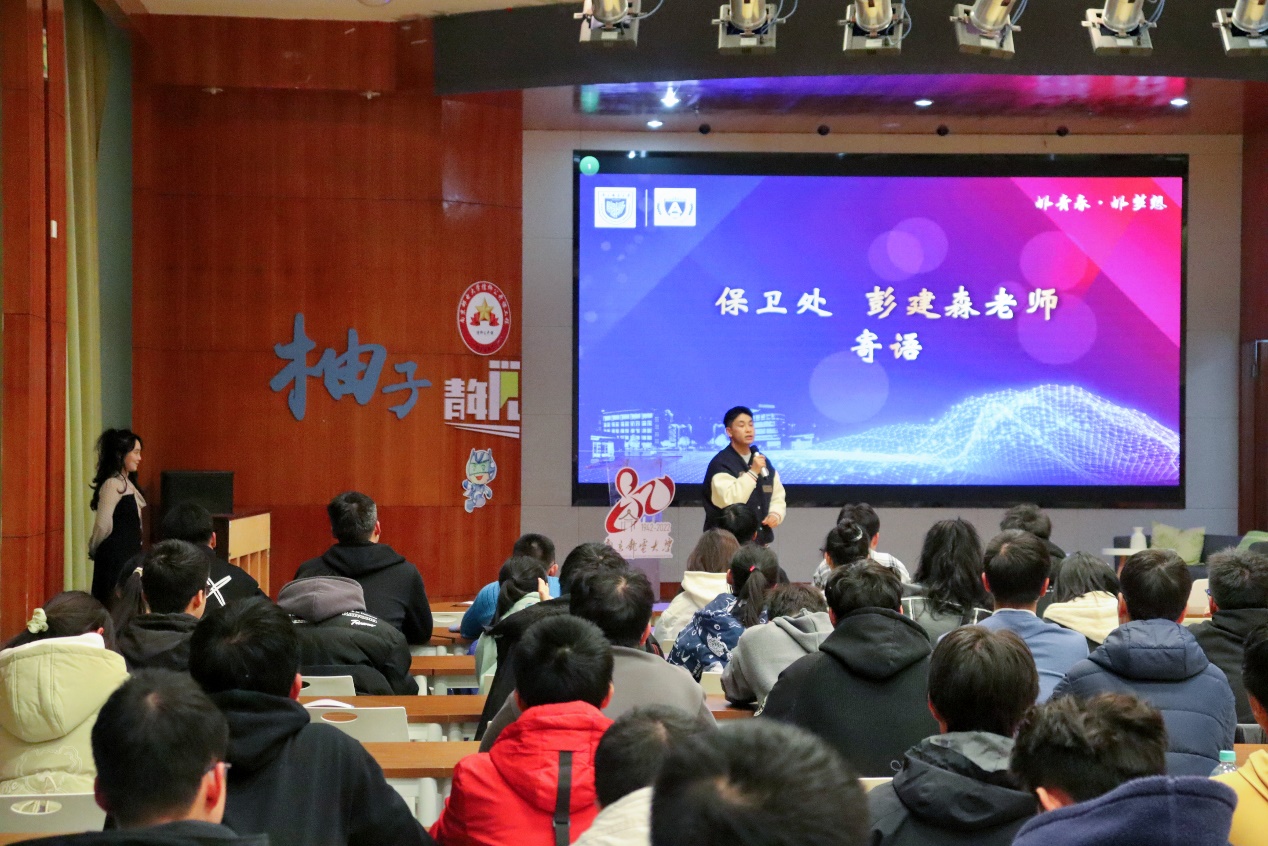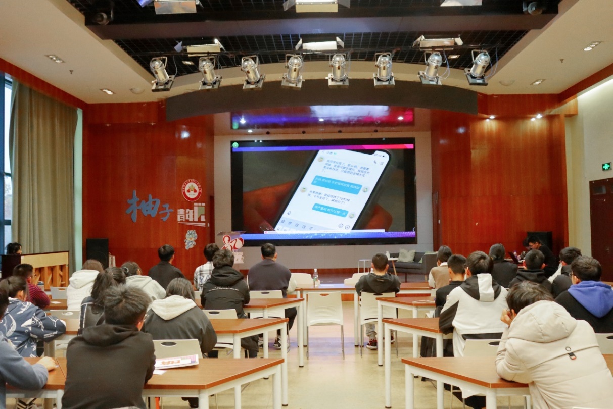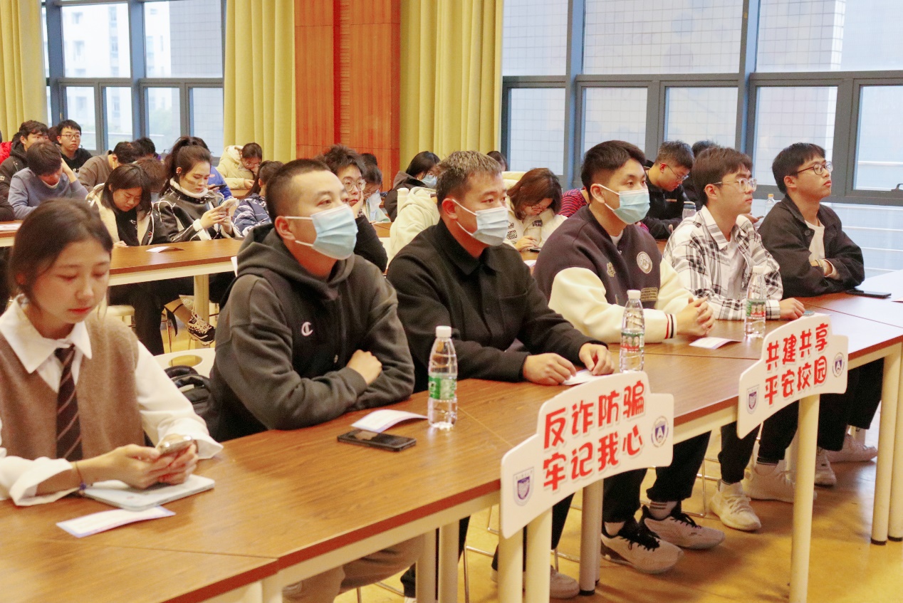 随后,彭建森老师深入研究和分析了集中发生在大学生当中的诈骗案例,并对同学们亲切寄语,提醒大家做好安全工作也应被视作学生学习生活的重点,引导在场同学提高安全防诈意识。
