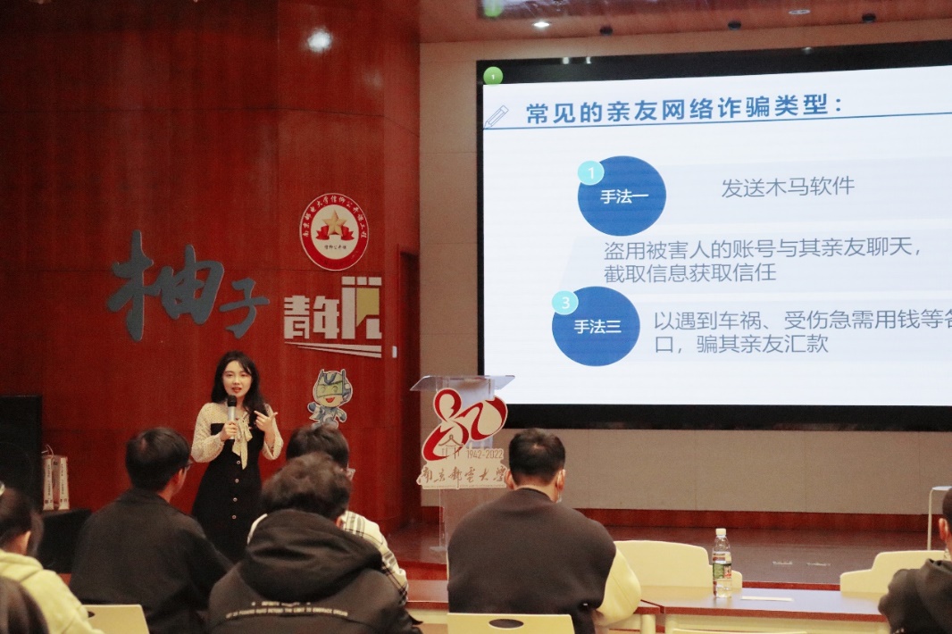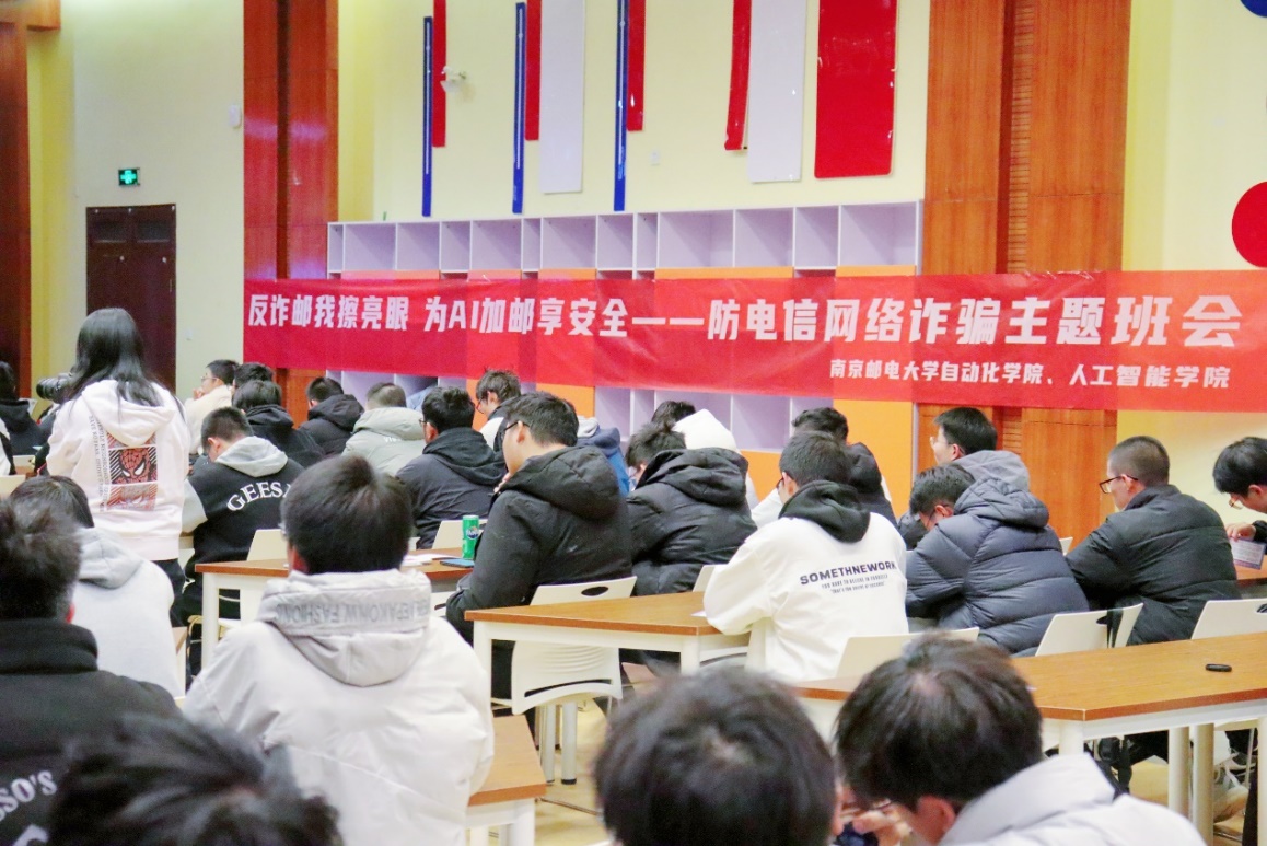 时刻紧绷安全之弦,严防电信网络诈骗。为进一步巩固学院师生防范电信网络诈骗的能力,提高师生的安全意识,遏制可控电信诈骗的发生,12月2日下午,厂长资源 、人工智能学院于仙林校区大学生活动中心团校教室隆重开展了 “反诈邮我擦亮眼,为AI加邮享安全”——防电信网络诈骗主题年级会。
