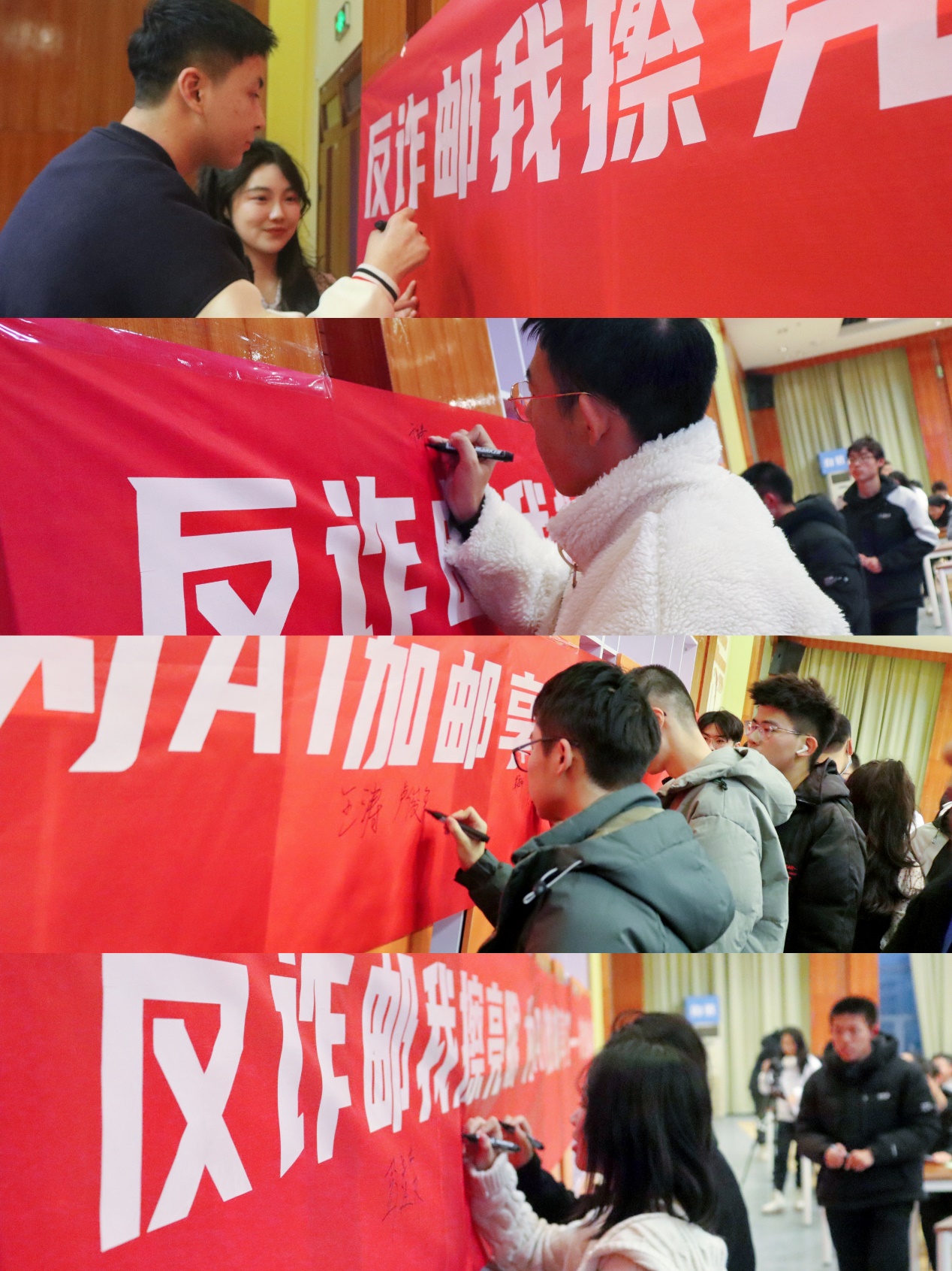 活动的结尾,全体师生有序登台,在签名区的宣传横幅上留下签名,以示大家防范电信网络诈骗的决心。