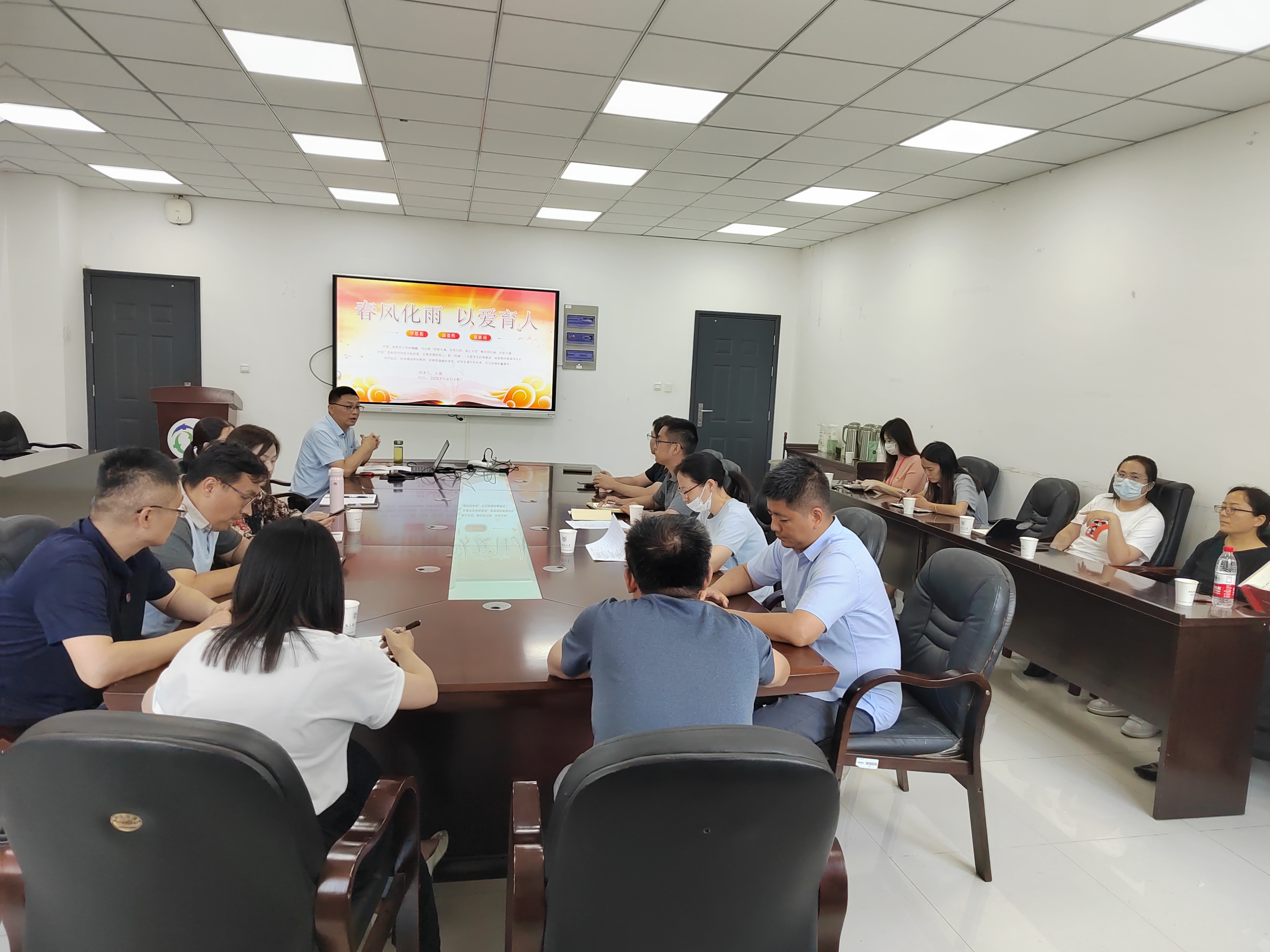 6月14日,厂长资源 、人工智能学院党委书记张翼以《春风化雨以爱育人》为题开展主题教育专题党课,学院电气工程系、教工一支部党员教师参加学习,校监督检查组柏杨参会指导。