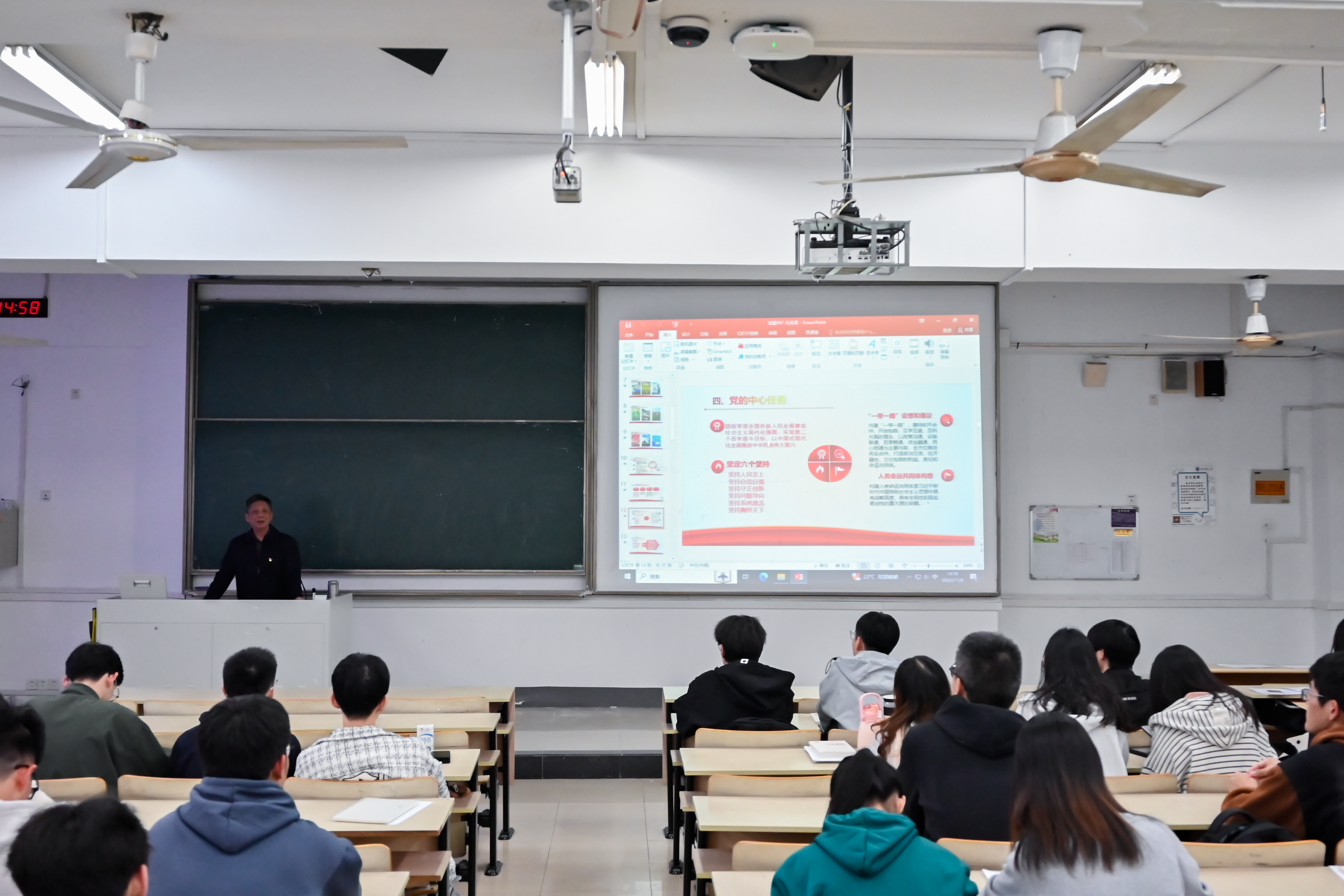 11月8日,厂长资源 第514期(厂长资源 、人工智能学院第25期)入党积极分子党校培训班专题党课“学习感悟二十大 勇毅奋进新征程”于教2 -208顺利召开。厂长资源 党委书记张翼,校关工委副秘书长孔宪禹,组织员李艳梅及109位入党积极分子参加了本次党课。本次专题党课由孔宪禹老师主讲。