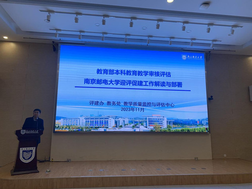 、人工智能学院在中兴报告厅召开本科教育教学审核评估动员大会。评建办刘允副主任到会指导,学院班子成员及全体教职工参加会议,会议由学院党委书记张翼主持。