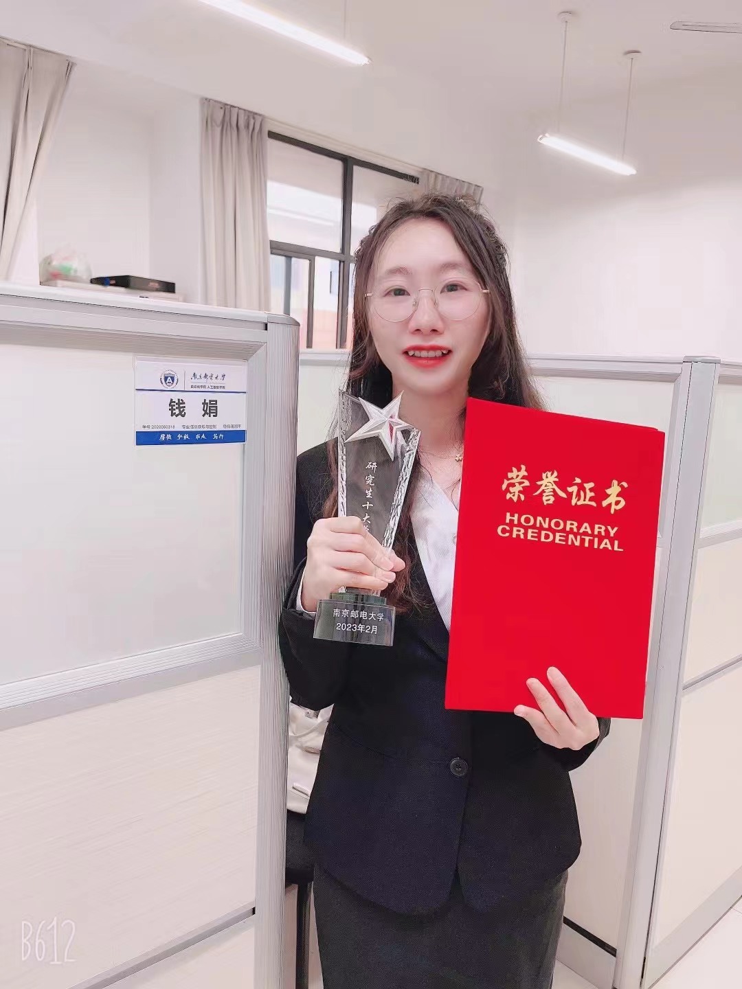 钱娟同学表示,对她而言,薛禹胜院士奖学金这份殊荣代表的不仅仅是物质上的奖励,更多的是对青年学子的激励和鞭策,是薛爷爷惜才育才的殷切希望,是学校和学院对他们每位获奖同学的肯定。今天她取得的每一进步和成绩,都离不开导师的帮助和学院的栽培,是本硕博贯通培养计划使她尽快进入导师团队开始感兴趣的科研学习生活,是薛院士奖学金的支持督促她向着更高的目标迈进。漫漫人生路,她只有努力拼搏,勇于担当责任,方能不辜负薛爷爷对他们获奖同学的厚爱,不辜负学校、学院和老师对他们的期望。“路漫漫其修远兮,吾将上下而求索”,作为第一届本硕博贯通培养的南邮学子,这已经是钱娟在南邮的第七年,从本科到博士,从十八岁第一次踏进这所校园的迷茫,还有四年前选择直博时对未来稍显模糊的规划,一直到现在对未来越来越清晰的认识。她不仅见证着校园日新月异的变化,而且在学术科研的探索中汲取丰富的精神食粮,这愈发坚定了她留在南邮的选择。回想大四进入导师团队第一次写会议论文的手忙脚乱,到成功发表第一篇SCI论文的淡定从容;从本科时和小伙伴们写实用新型专利的百般思索,到如今在导师的指导和帮助下能够与团队一同顺利完成发明专利的欣喜;从本科阶段数模比赛时的抓耳挠腮,到博士阶段临时组队时也能有条不紊,带领队员拿到奖项。漫漫长路,她脚踏实地,在自己的专业领域上开拓创新,敢为人先、敢于突破,在攀登知识高峰中追求卓越,在肩负时代重任时行胜于言,展现了新时代青年人的朝气蓬勃和责任担当。