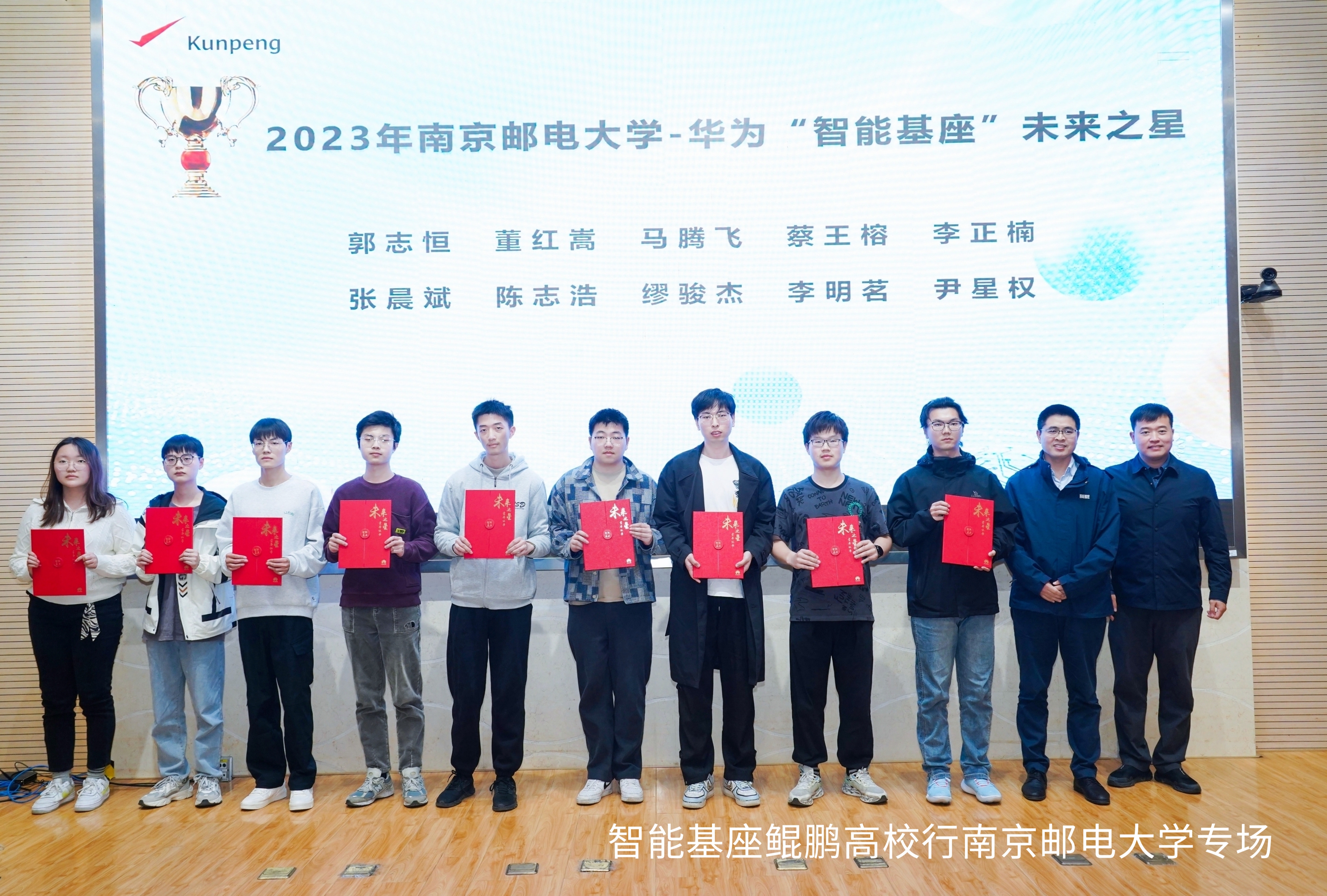 本次活动设置了颁奖环节,厂长资源 厂长资源 、人工智能学院党委副书记、副院长孙委委和华为高校与科研人才总监陈守玉共同为30名获奖同学颁发智能基座奖学金,旨在鼓励学生在创新创业和实践能力方面取得的突破和成绩,并鼓励同学们刻苦学习,励志成才,与新技术新生态共同发展,共同开创美好明天。