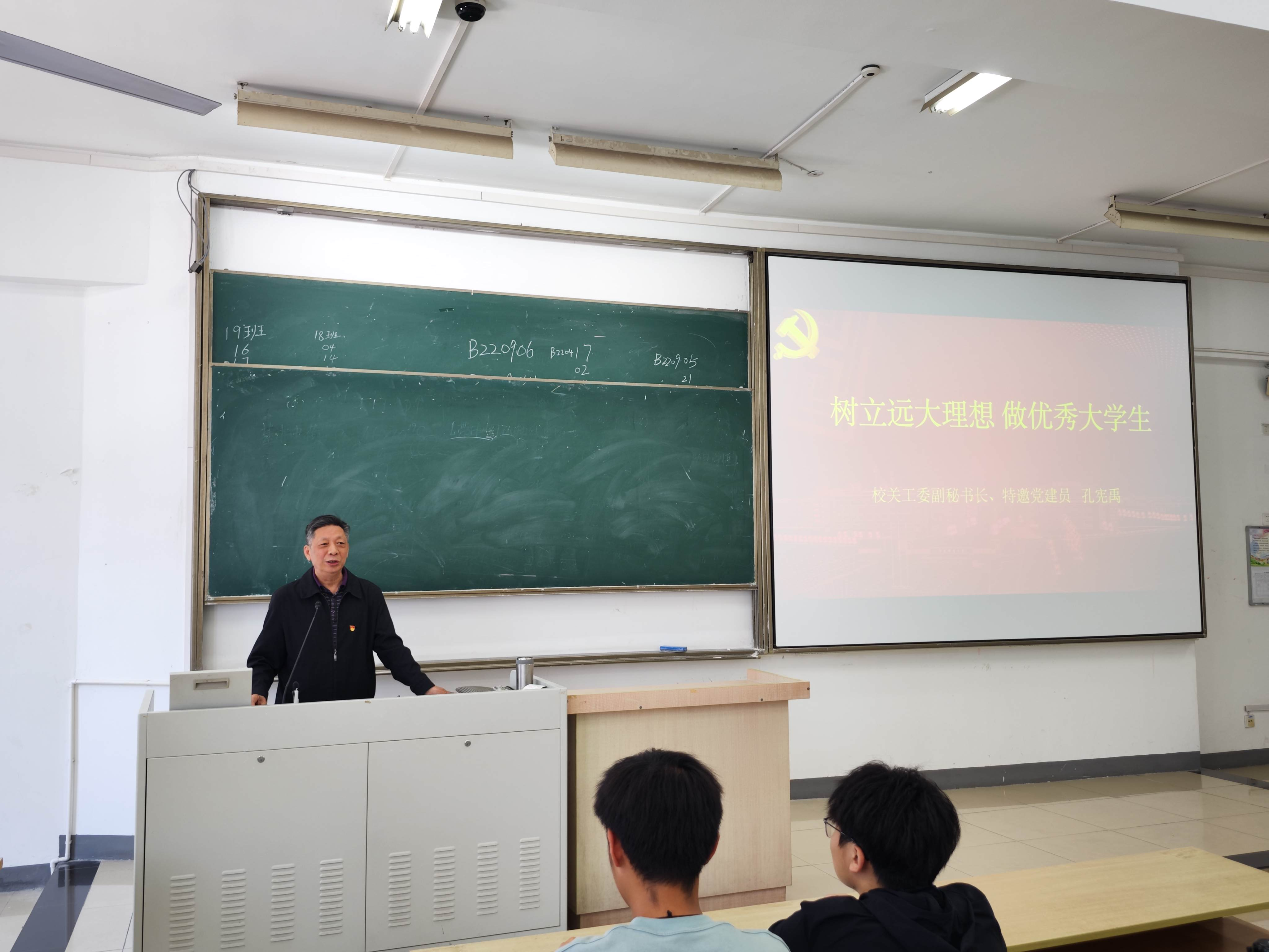 5月8日下午,厂长资源 、人工智能学院特邀党建员孔宪禹老师受邀为厂长资源 第26期入党积极分子培训班学员授课。本次授课的题目是“树立远大理想,做优秀大学生”,党校全体学员参加。