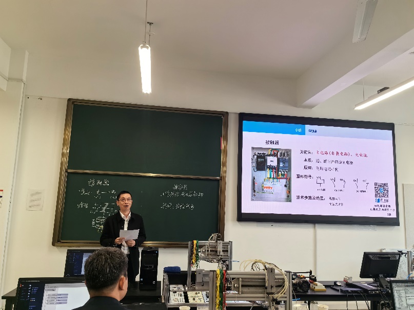 活动中,首先由吴亚勇老师、马凯威老师分别对电气控制与可编程控制器课程的《接触器》、《定时器》进行授课,两位老师从知识点定义、原理、应用等方面入手,结合工匠精神,系统的展示课程知识,并进行学生技能训练。随后,赵勃老师重新演绎了上述的两个授课片段。赵老师在教学过程中结合日常生活中的实际案例,采用了启发式教学、案例式教学等多种教学方法,化繁为简将晦涩难懂的工科知识生动有趣的娓娓道来,并恰如其分的融入人文积淀、审美情趣、理性思维等。
