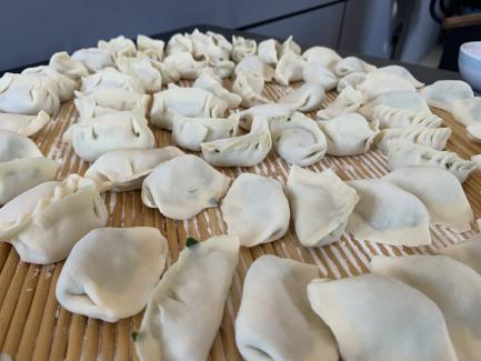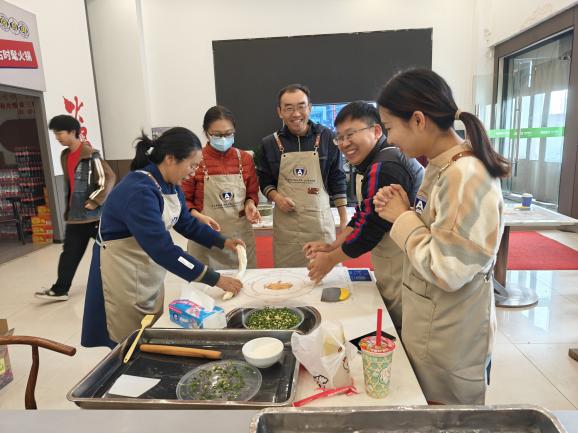 活动当天,老师们陆续抵达活动现场,领取学院工会统一定制的围裙,自行组队,开始包饺子。小组成员分工协作,有人擀皮有人包,一张张洁白的面皮配上精心调好的馅料在大家的手中变成了一个个胖嘟嘟、圆鼓鼓的饺子。现场气氛和谐、笑语不断,大家时而探讨心得,时而过招切磋,冬日的阴霾在欢声笑语中消散。最后把包好的饺子下锅,热腾腾的饺子,暖融融的情谊,大家边吃边聊,尽情享受美食带来的满足。