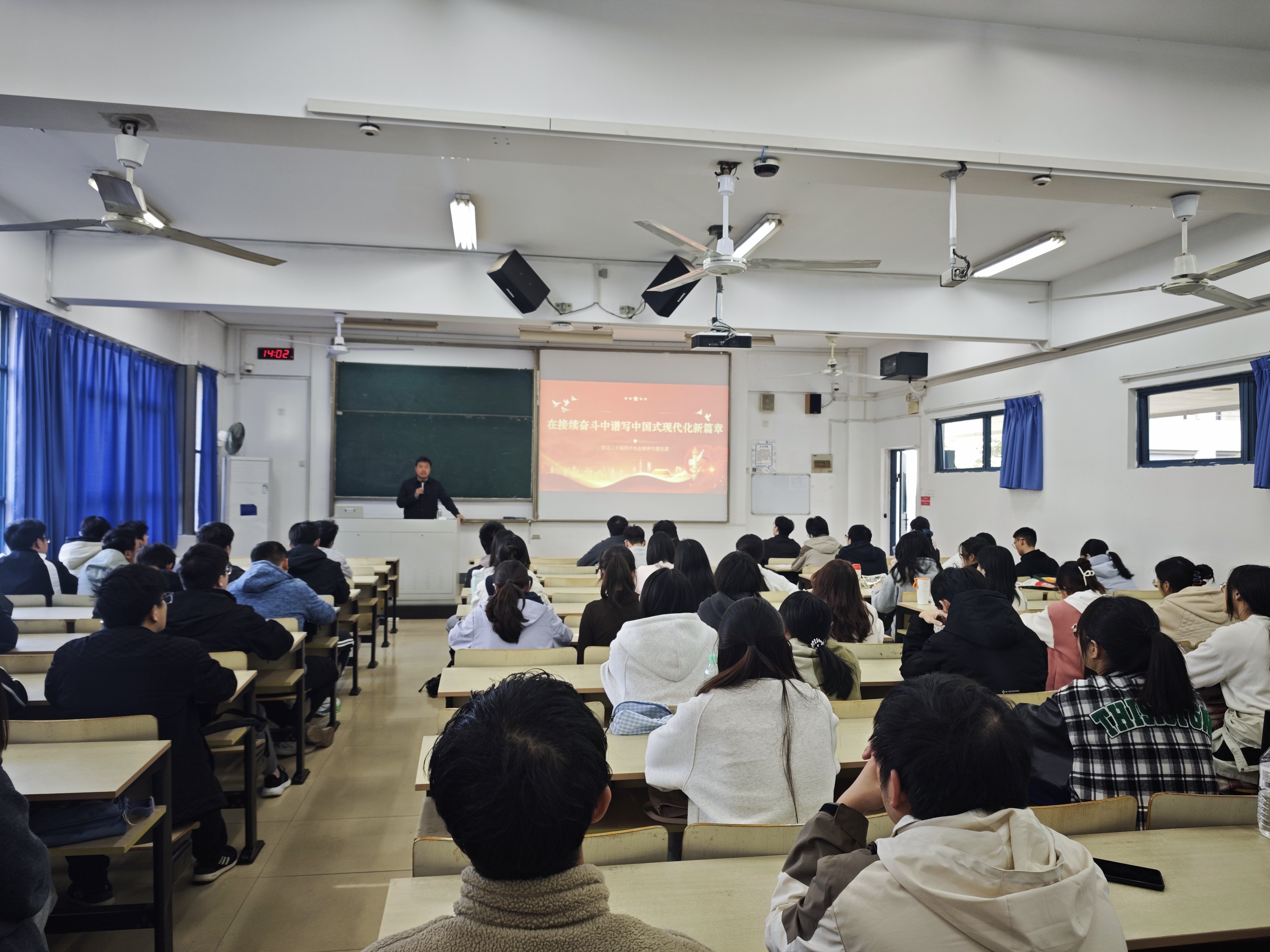孙委委副书记围绕党的二十届四中全会精神,以《在接续奋斗中谱写中国式现代化新篇章》为题,全面解读了党的二十届四中全会的重要内容和未来五年国家发展规划。全会讨论了“十五五”规划草案,总结了“十四五”时期成就,并提出了包括高质量发展、共同富裕、绿色转型等在内的发展目标。孙委委副书记强调了青年学生作为国家未来建设者的时代使命,鼓励全体学员树立理想、坚定信念、刻苦学习,积极参与社会实践与志愿服务,践行青年人的时代担当。他特别提出入党积极分子应具备的责任感和担当精神,明确要求全体入党积极分子在思想上率先入党,在行动上积极奉献,在行为上严格要求自己。他希望全体同学珍惜大学时光,学好专业知识,提升自身能力,同时关心身边的同学,主动参与学院、班级和宿舍的学风建设和日常管理工作。最后孙委委副书记号召全体学生珍惜时光、不负韶华,在实现中华民族伟大复兴的历史进程中贡献自己的力量。